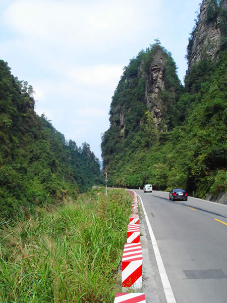 百丈峽圖片 百丈峽是武陵源風(fēng)景名勝區(qū)通往張家界市的公路貫通整個峽谷,因有堵高近百丈的石壁,直插云霄,不敢仰視,故而得名。據(jù)《慈利縣志》載,索溪峪右得百丈峽,峽長三十公里……又相傳向王天子起義軍與官兵在此先后博殺一百仗,依此又名百仗峽。明代九永兵備胡桂芳,一生好游歷山川,來到百丈峽后題寫了一首七言詩:“峽高百丈洞云深,要識桃源此處尋;戎旅徐行風(fēng)雪緊,誰將興盡類山蔭!笨逃趰{內(nèi)道旁石壁上。